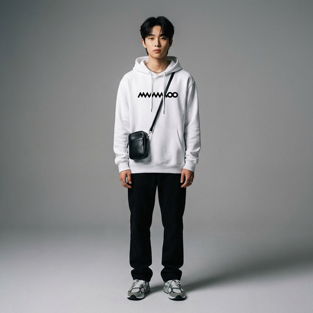 - Beginnen Sie jetzt damit, einen langärmeligen Kapuzenpullover der Gruppe Mamamoo zu tragen.