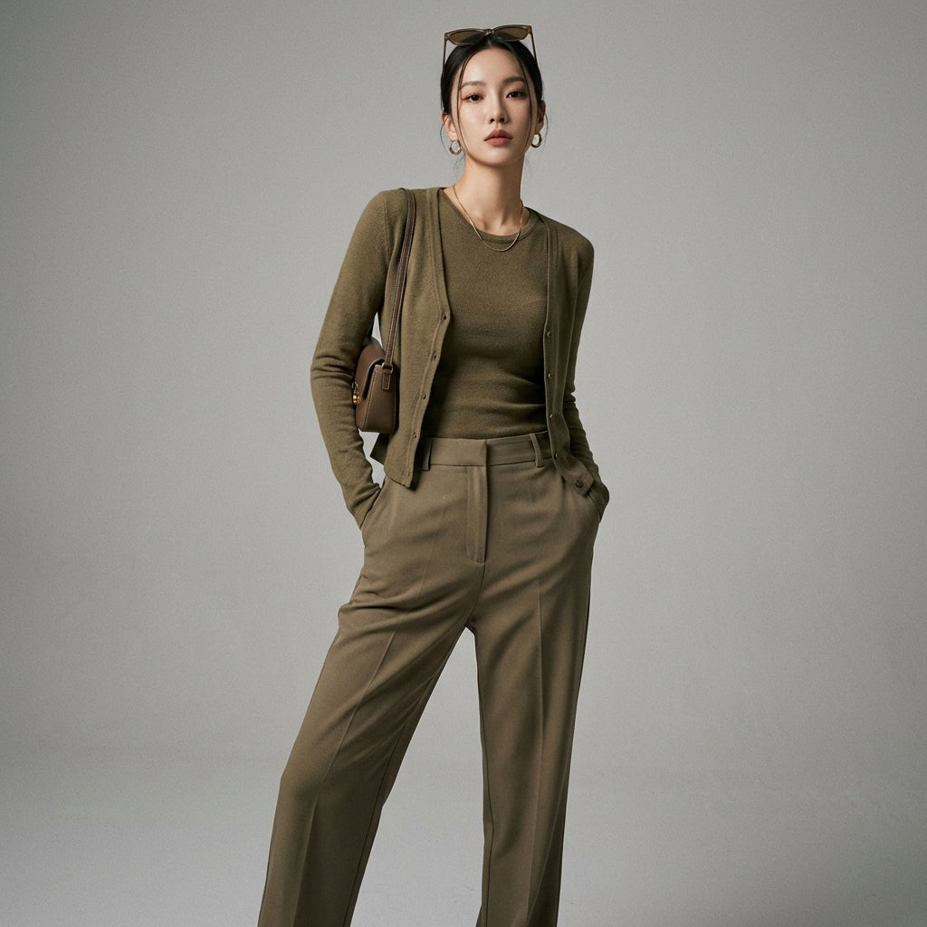 Dieses Set ist ein Schlüsselstück für jede Garderobe und bietet Stilflexibilität und zeitlose Eleganz, inspiriert von den neuesten Trends der koreanischen Mode.