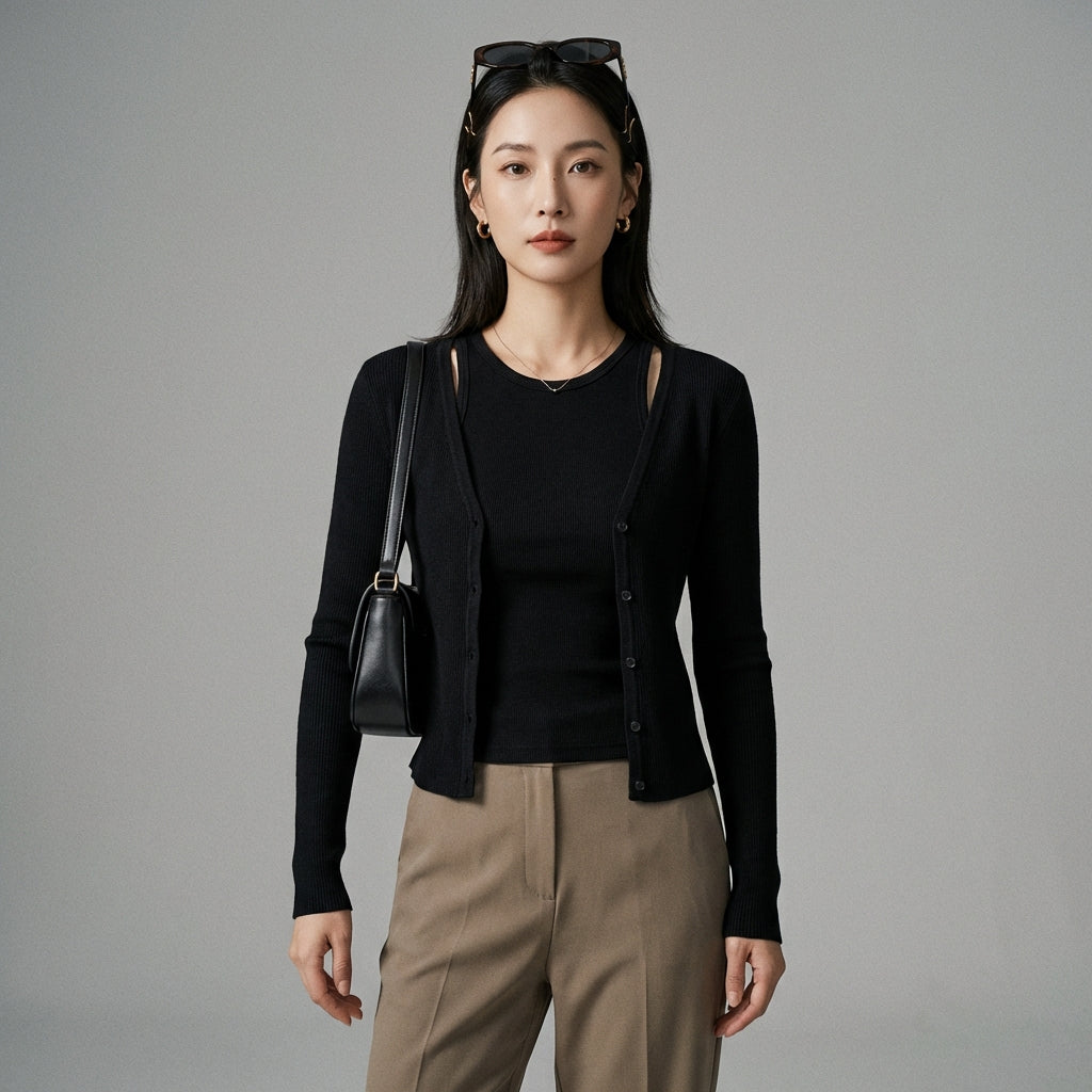 Ensemble débardeur et cardigan manches longues femme - K-fashion chic et tendance