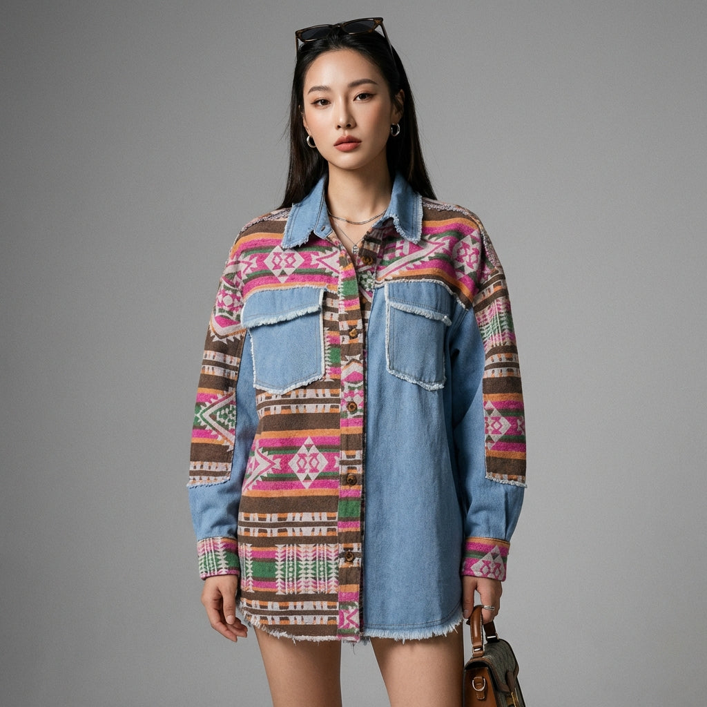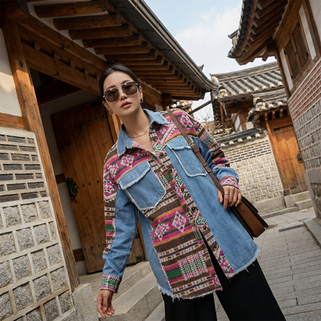 Entscheiden Sie sich für diese ausgefranste Jeansjacke und fügen Sie Ihrer Garderobe ein Schlüsselstück hinzu, das Komfort, Stil und einen Hauch von Kühnheit, inspiriert von den neuesten koreanischen Trends, vereint.