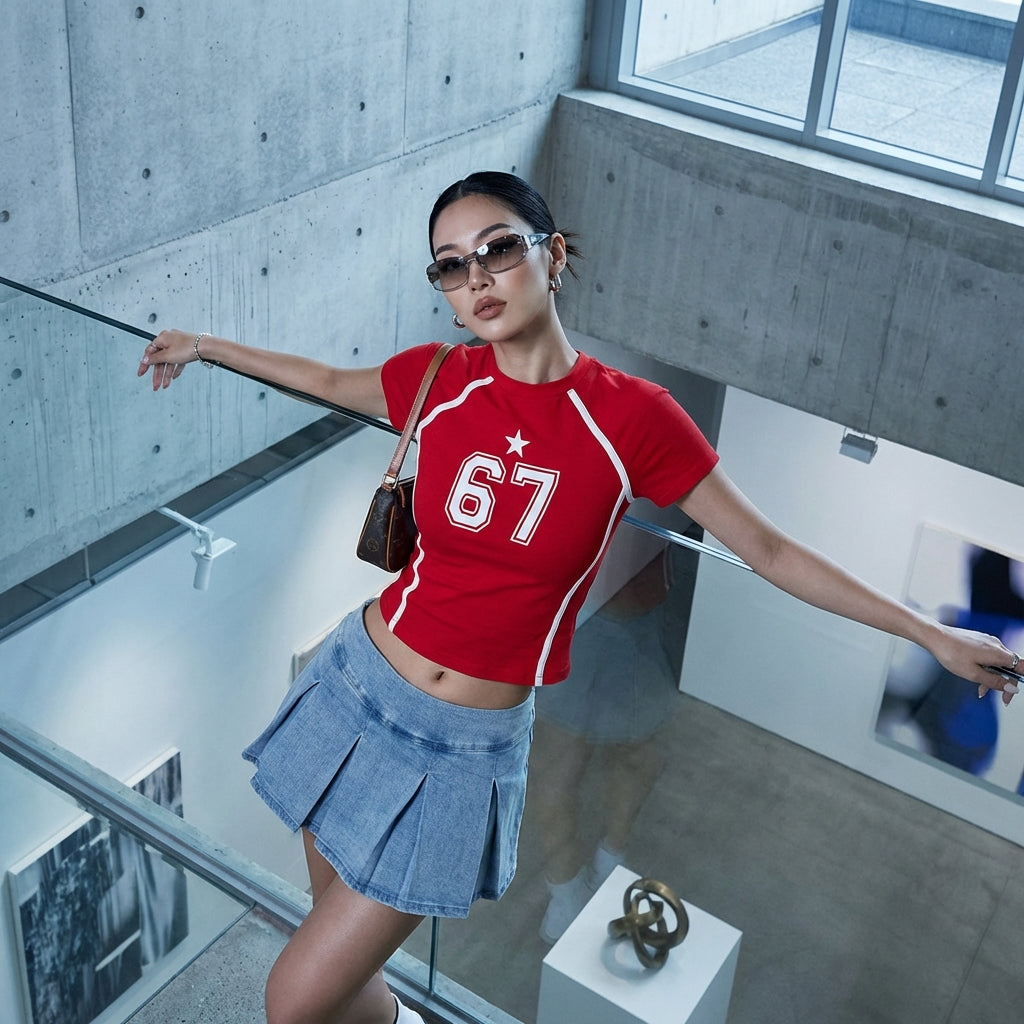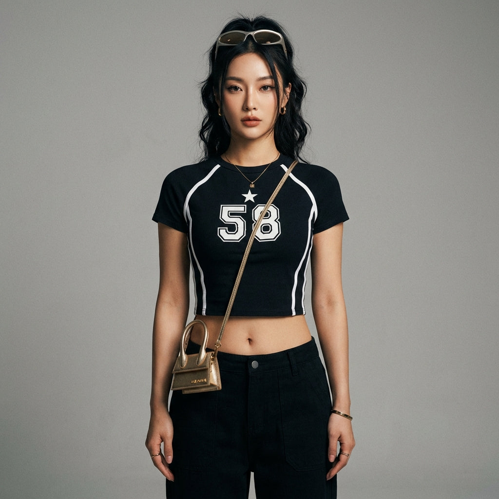 - Stil: Streetwear, K-Fashion, Trend. Dieses Crop Top verkörpert die Dynamik der koreanischen urbanen Mode, ideal für einen lässigen und stylischen Look.