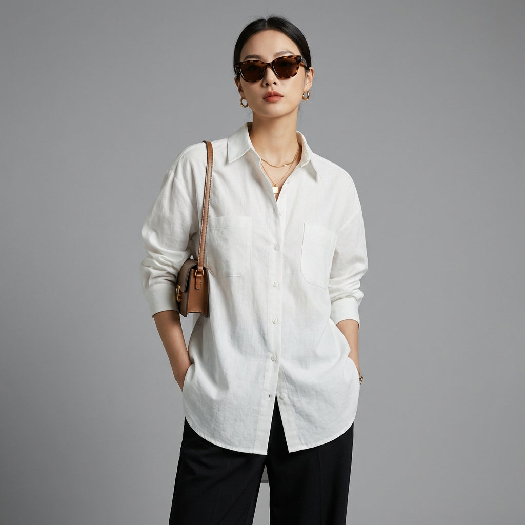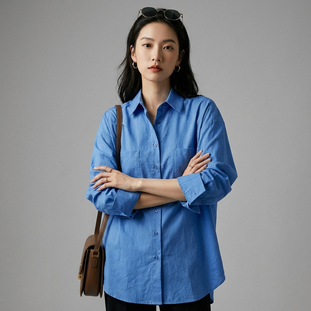 - Typ: Oversize-Hemd, Langarm. Ein lockerer und bequemer Schnitt, der eine moderne Silhouette und große Bewegungsfreiheit gewährleistet.