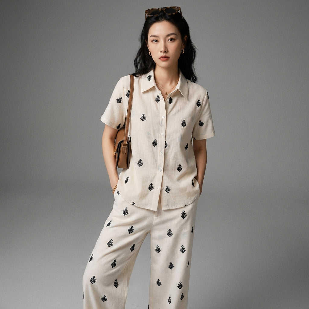 - Typ: Kurzarmhemd, weite Hose. Ein lockerer und moderner Schnitt, der Bewegungsfreiheit und Komfort bietet.