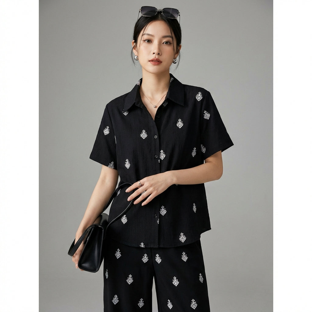 Entdecken Sie unser besticktes Set, bestehend aus einem Hemd und einer weiten Hose, perfekt für einen lässigen und schicken Look. Die Stickereien verleihen diesem bequemen und vielseitigen Set einen Hauch von Originalität und Raffinesse! ✨