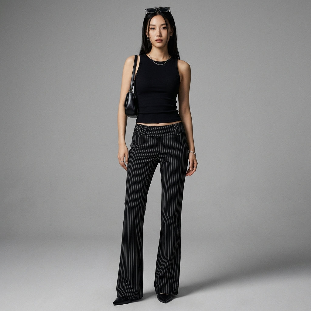 Pantalon rayé taille basse noir - Mode Coréenne Streetwear