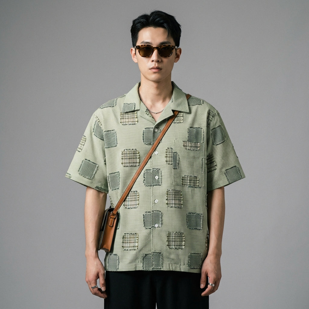 - Typ: Weit geschnitten, kurze Ärmel, Kubakragen. Ein entspannter Schnitt, der große Bewegungsfreiheit und einen modernen Stil gewährleistet.