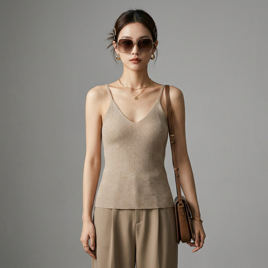 - Stil: Minimalistisch, Chic, K-Fashion. Dieses Tanktop verkörpert die diskrete Eleganz und die klaren Linien der zeitgenössischen koreanischen Mode.