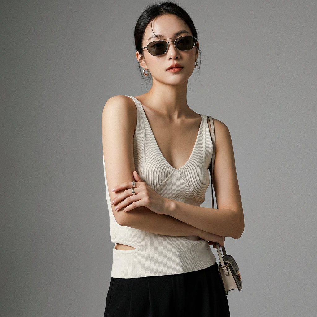 Entdecken Sie den lässig-eleganten Stil mit unserem gestrickten V-Ausschnitt-Tanktop. Sein schmaler Schnitt und sein weiches Material machen es zu einem unverzichtbaren Kleidungsstück für alle Jahreszeiten. Erhältlich in verschiedenen Farben, passend zu all Ihren Wünschen! ✨