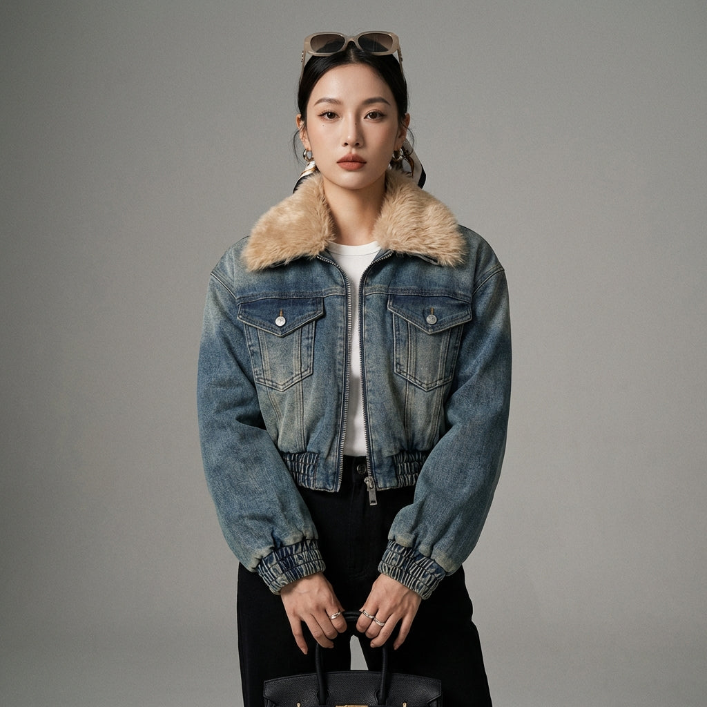 Entdecken Sie unsere vielseitige Jeansjacke mit abnehmbarem Kunstfellkragen, die sich jeder Jahreszeit anpasst. Ihr Retro-Design und die bequeme Passform machen sie zu einem unverzichtbaren Bestandteil der modernen Garderobe, perfekt für einen lässigen und stilvollen Look! 💙