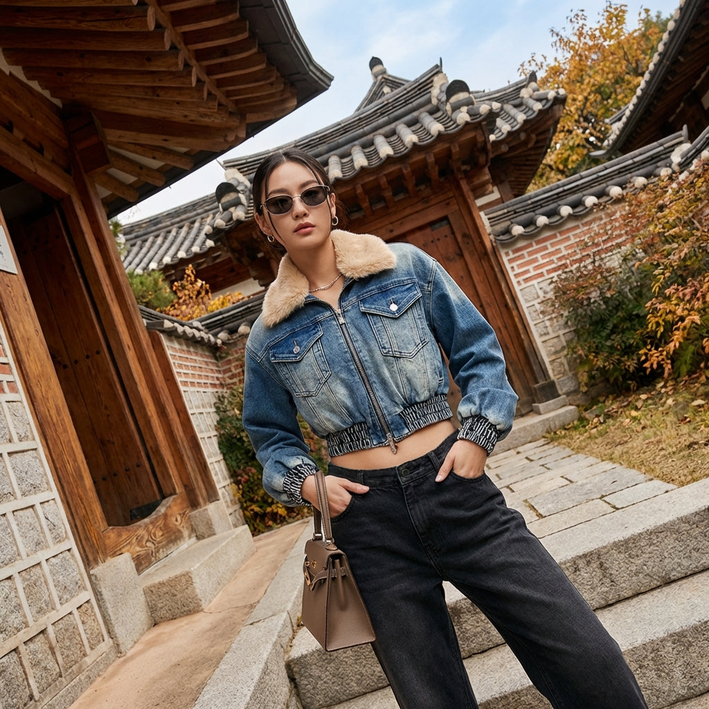 • Stil: Retro, Streetwear, K-Fashion. Diese Jacke verbindet den zeitlosen Charme von Denim mit einem modernen Touch, inspiriert von koreanischen Trends.