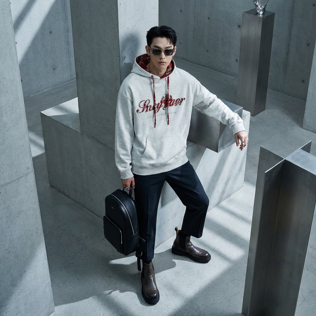 Mit diesem Kapuzenpullover wählen Sie ein Schlüsselstück für Ihre Garderobe, das Komfort und die zeitgenössische Streetwear-Ästhetik der koreanischen Mode vereint.
