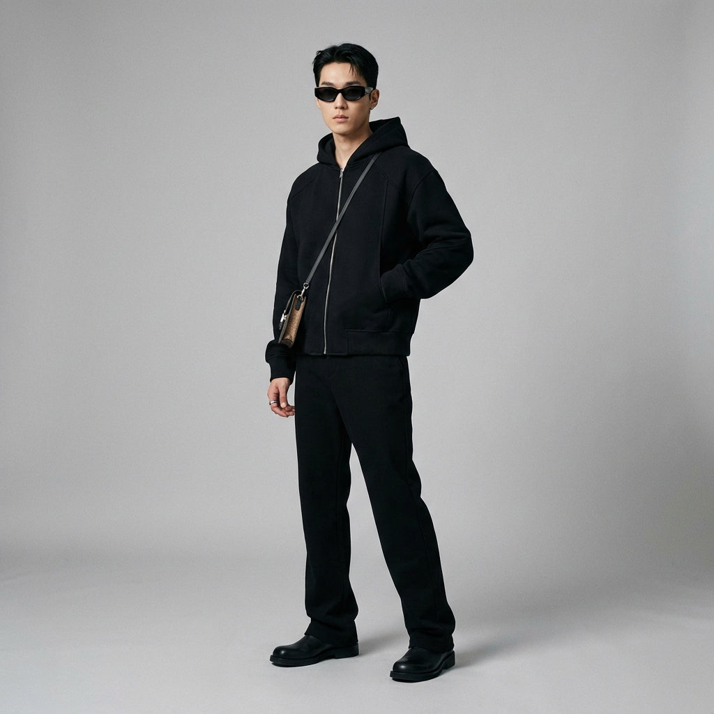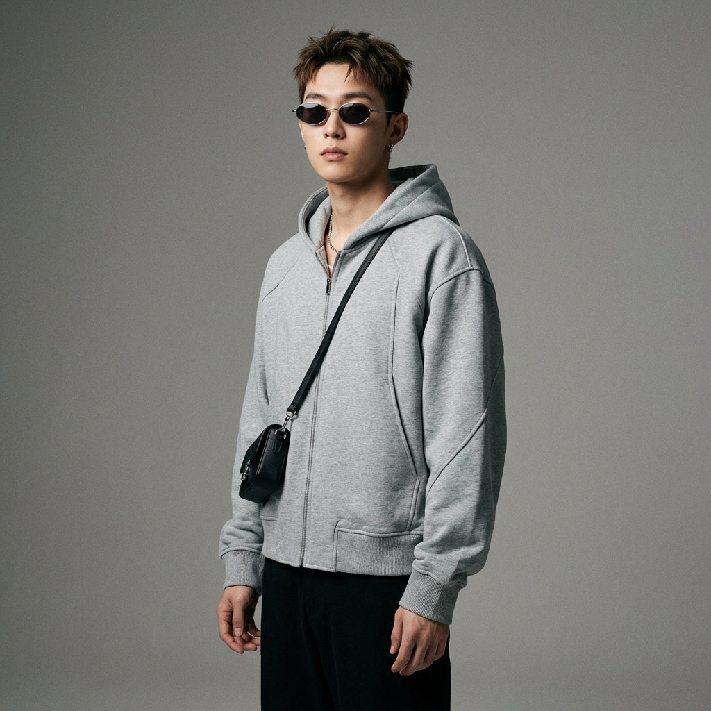 Kreieren Sie einen lässigen und modernen Look mit unserem Kapuzenpullover mit Reißverschluss. Seine weite Passform und sein schlichtes Design machen ihn zu einem vielseitigen Essential für alle Gelegenheiten, das Komfort und Stil mühelos vereint! ✨