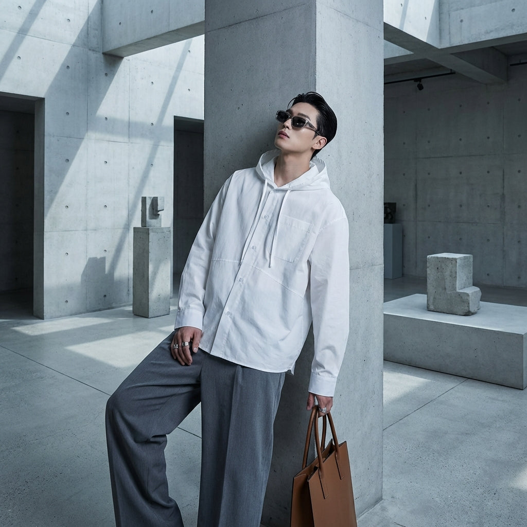 - Stil: Streetwear, Casual, Urban. Dieses Hemd verkörpert den Geist der lässigen koreanischen Mode, perfekt für einen modernen und trendigen Look.