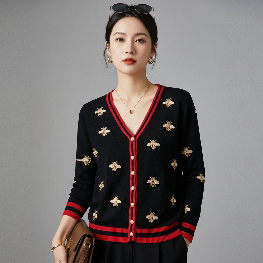 Entdecken Sie den lässig-eleganten Stil mit unserem leichten Strickcardigan. Ideal für kühlere Tage, ist er mit einer zarten Bienenstickerei verziert und hat einen lockeren Schnitt, der ihn zum perfekten Kleidungsstück für einen Lagenlook macht. Ein Must-have für einen Hauch von Sanftheit in Ihrer Garderobe! 🐝