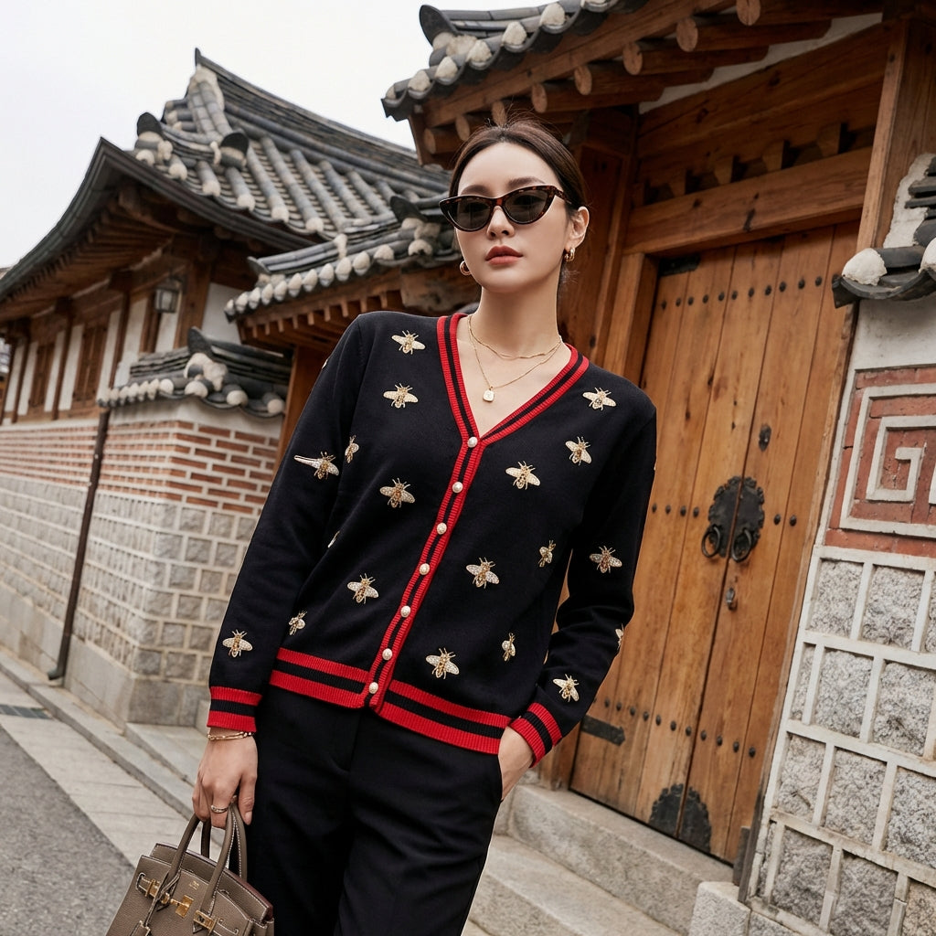 - Stil: K-Fashion, Sanft, Elegant, Lässig. Dieser Cardigan verkörpert die dezente Eleganz und Leichtigkeit der koreanischen Mode, mit einem Hauch von Fantasie.