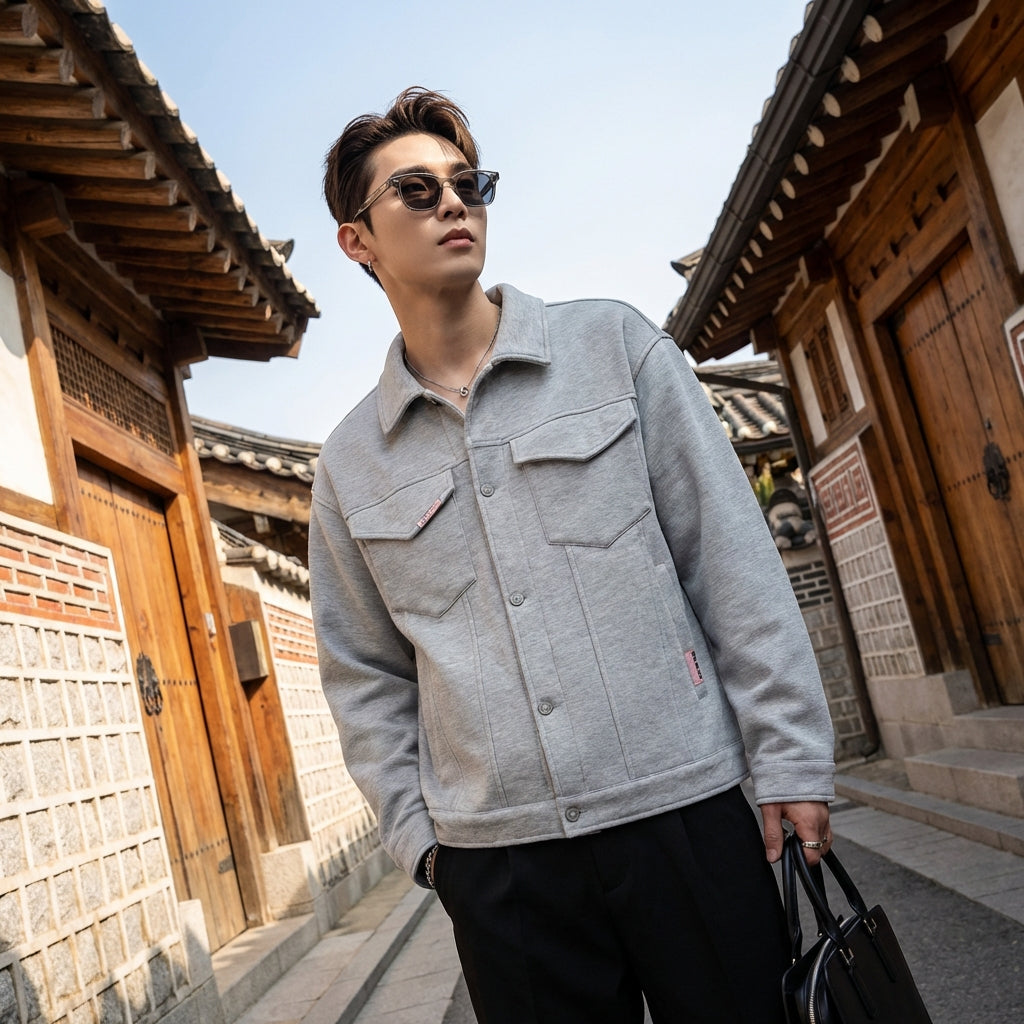 - Stil: Minimalistisch, Streetwear, K-Fashion. Diese Jacke verkörpert diskrete Eleganz und Modernität, inspiriert von der koreanischen Mode.