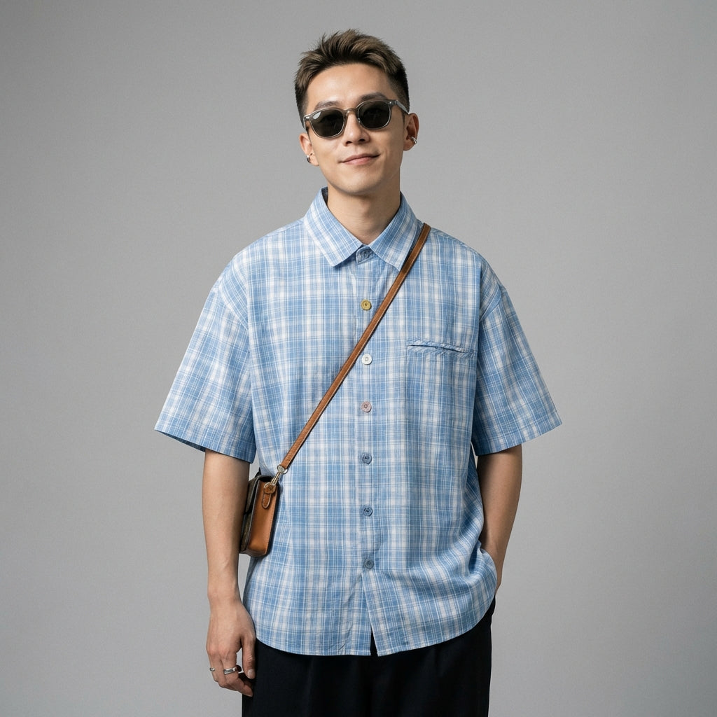 Kreieren Sie einen lässigen und trendigen Look mit unserem Oversize-Karohemd, perfekt für einen selbstbewussten Streetwear-Stil. Der klassische Kragen und die kurzen Ärmel machen es zu einem Must-have für sonnige Tage! ☀️