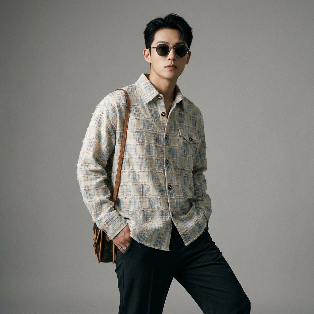 Mit diesem Karohemd fügen Sie Ihrer Kollektion ein vielseitiges und stilvolles Stück hinzu, perfekt, um Ihre Persönlichkeit auszudrücken und den neuesten Trends der koreanischen Mode zu folgen.