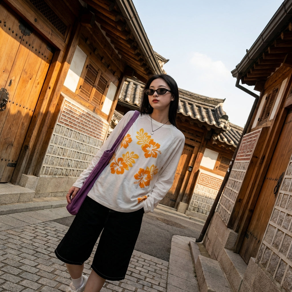 - Stil: Streetwear, Casual, K-Fashion. Dieses T-Shirt verkörpert die lässige und trendige Ästhetik der koreanischen Mode, mit einem modernen Schnitt und einem klaren Design.