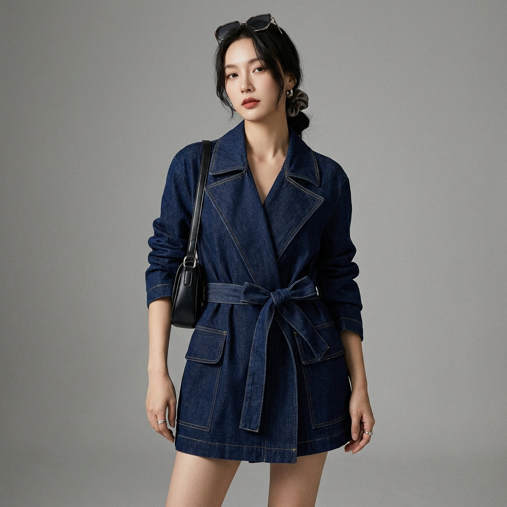Kreieren Sie einen trendigen und lässigen Look mit unserer langen Oversize-Jeansjacke. Mit einem Gürtel zur Betonung der Silhouette und praktischen Taschen ist diese Jacke das ideale Herzstück für einen urbanen und modernen Stil! ✨