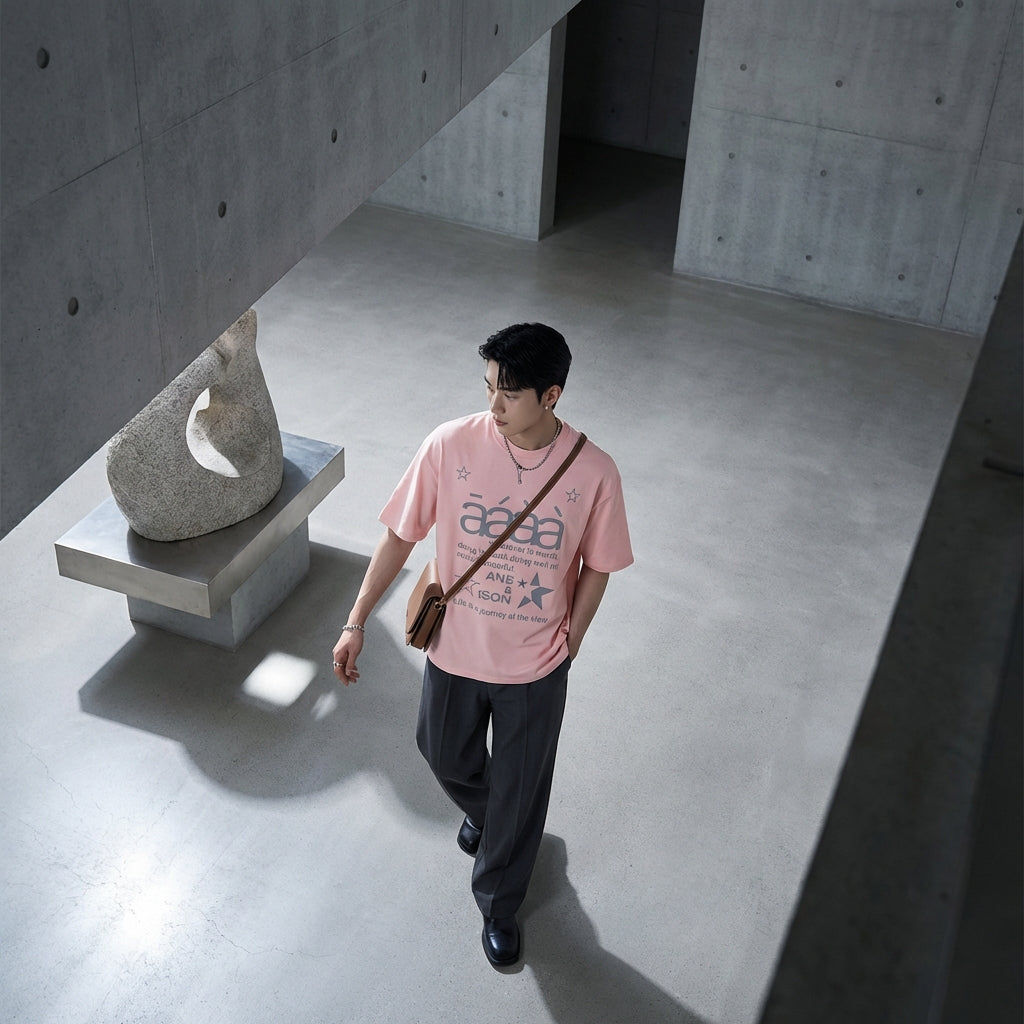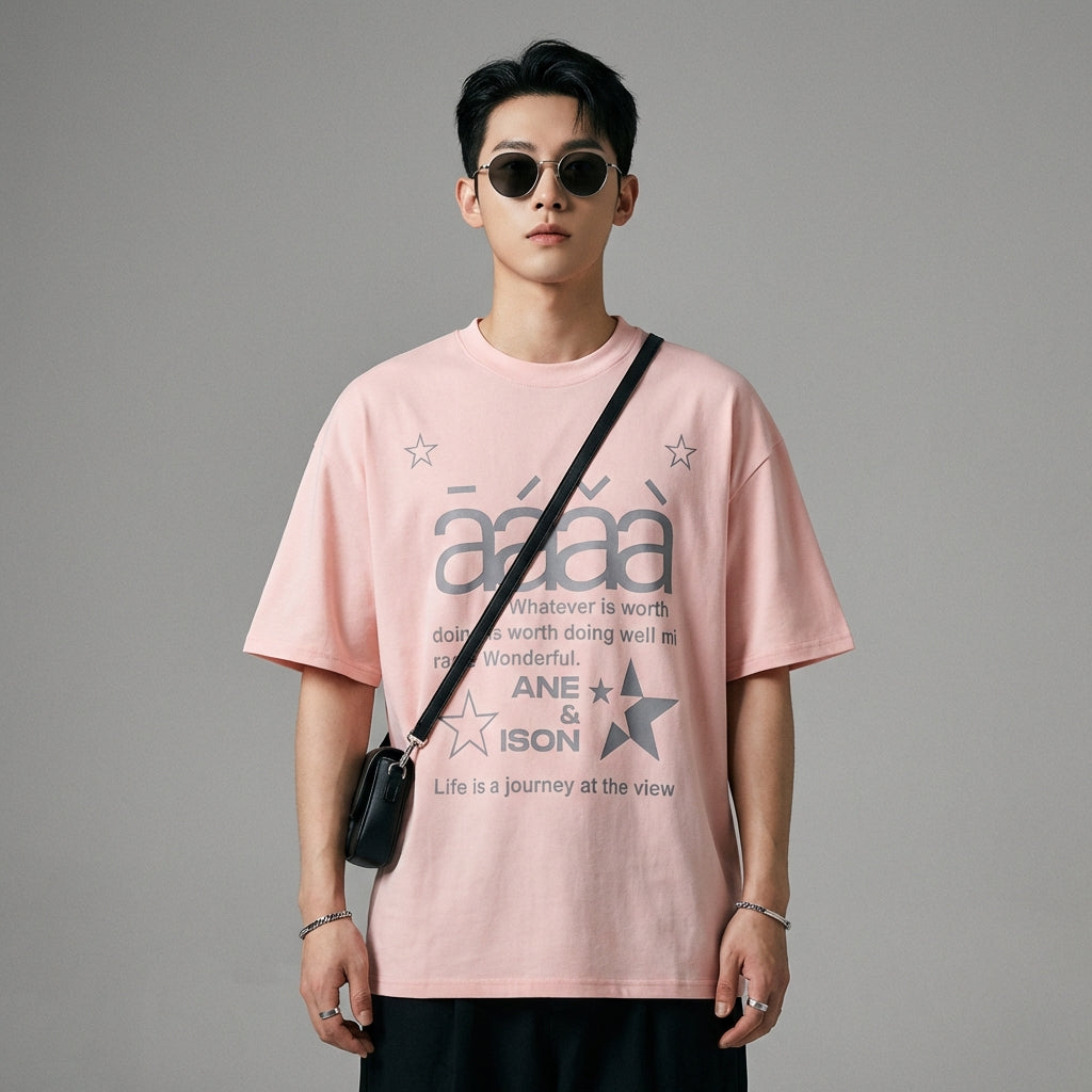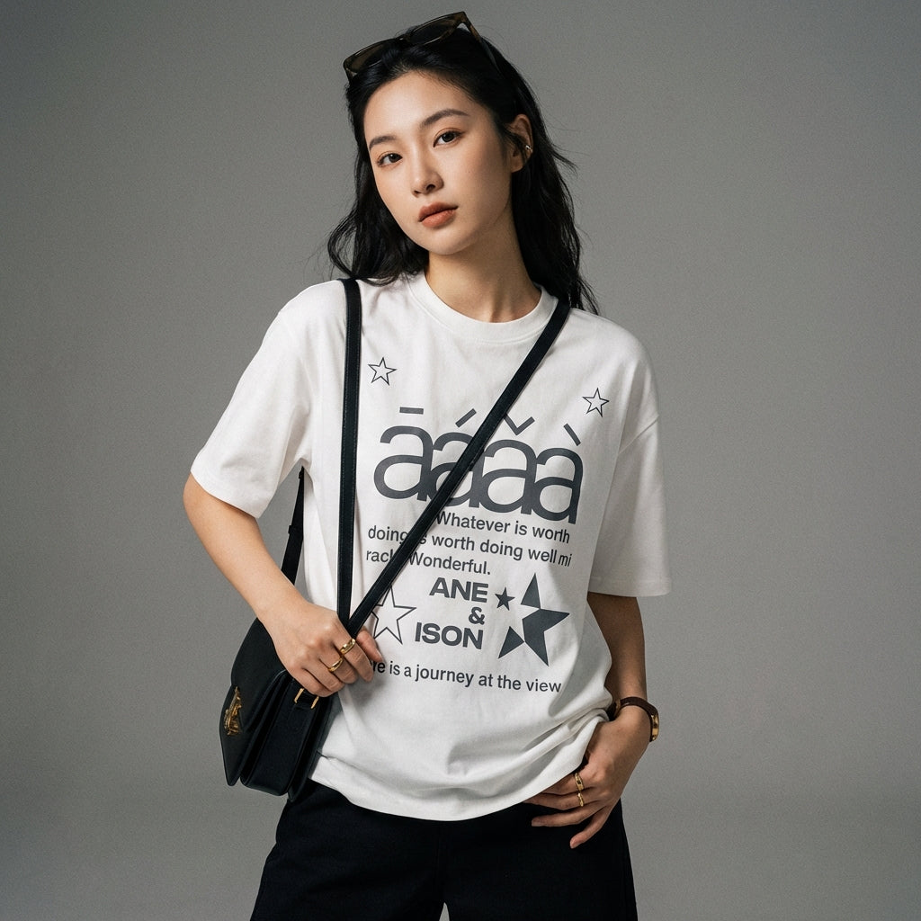 - Stil: Streetwear, K-Fashion, Lässig. Dieses T-Shirt verkörpert den freien und trendigen Geist der koreanischen Mode, ideal für einen urbanen und modernen Look.