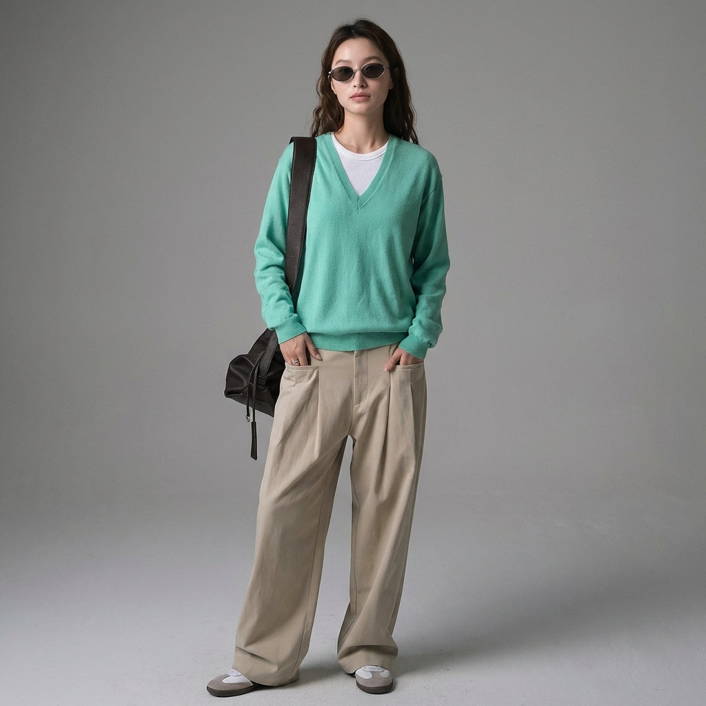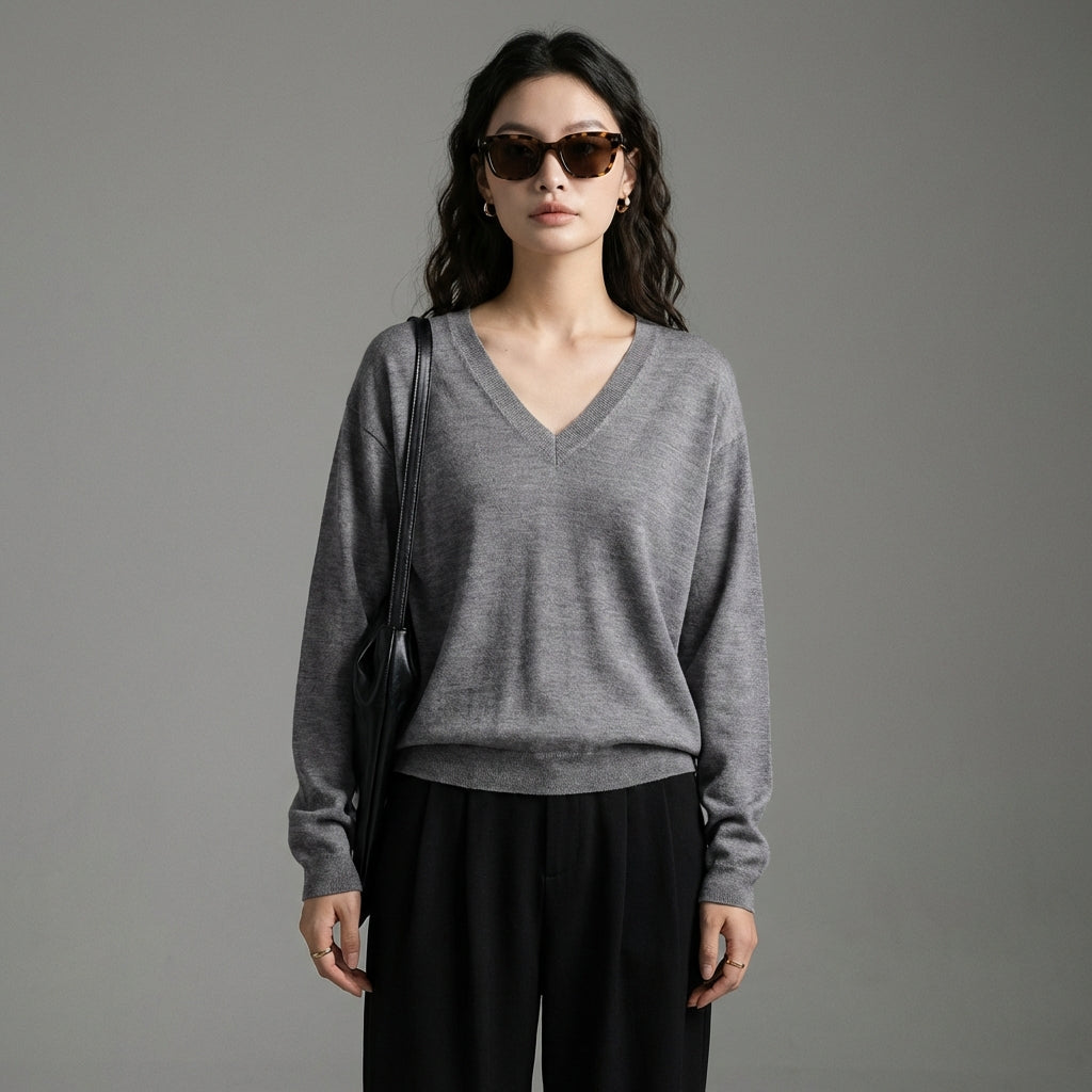- Typ: Pullover, V-Ausschnitt, Oversize. Ein lockerer Schnitt und ein V-Ausschnitt für eine entspannte und stilvolle Silhouette, leicht zu kombinieren.