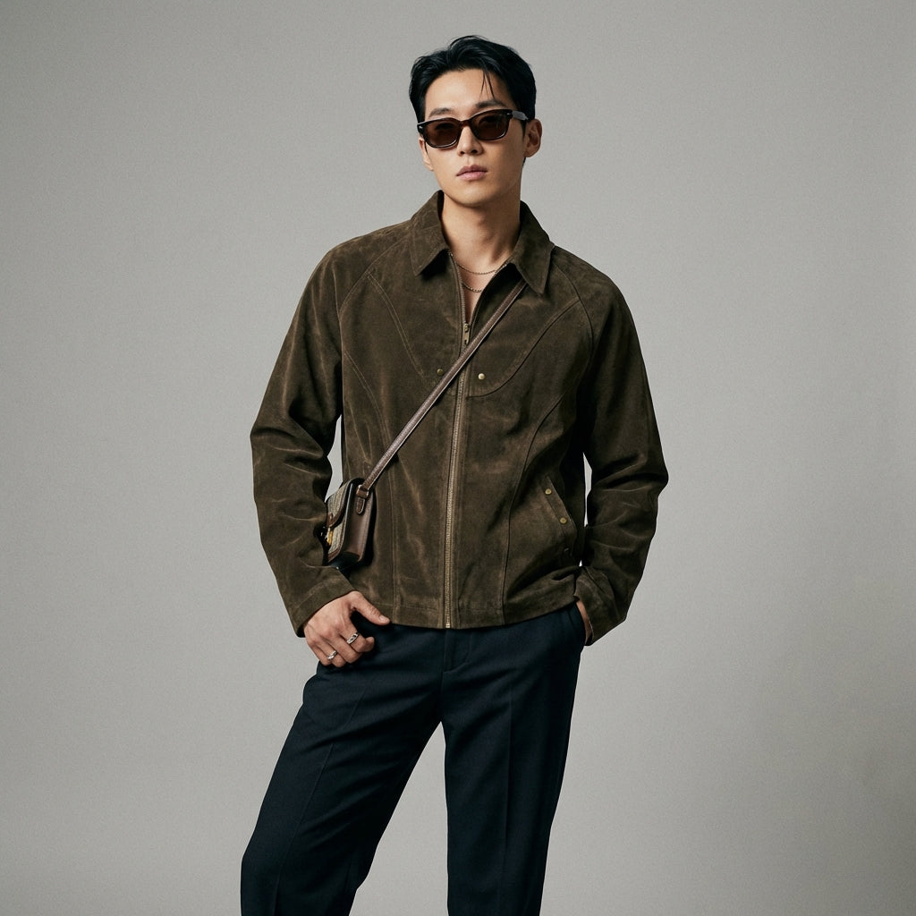 Betonen Sie Ihren Stil mit unserer Retro-Wildleder-Motorradjacke, einem lässigen und trendigen Stück. Ihr klares Design, die sorgfältige Verarbeitung und der umklappbare Kragen machen sie zu einem Must-have für einen urbanen und gewagten Look! 🏍️