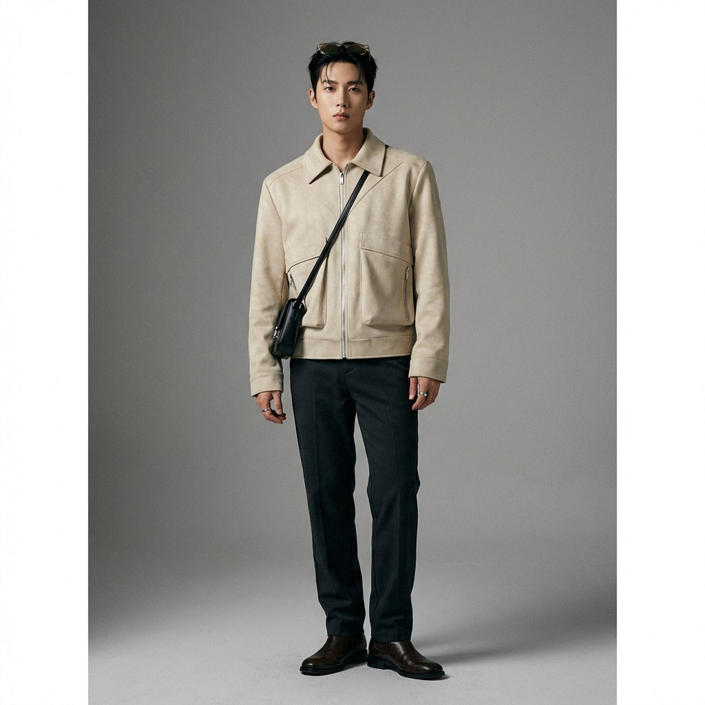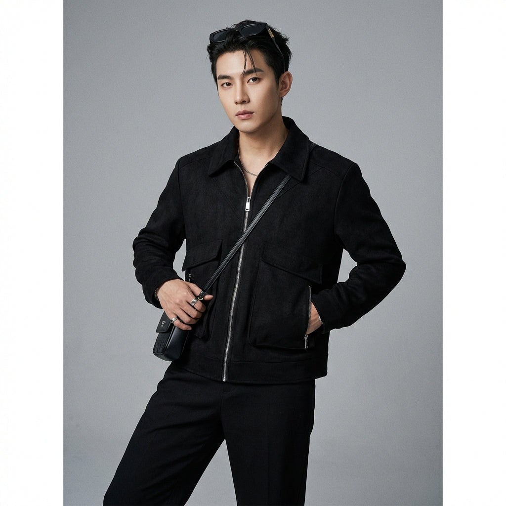 Kreieren Sie einen lässigen und trendigen Look mit unserer Streetwear-Jacke mit Samtkragen. Ihr lockerer Schnitt und die praktischen Taschen machen sie zu einem Must-have für einen selbstbewussten urbanen Stil! 🧥