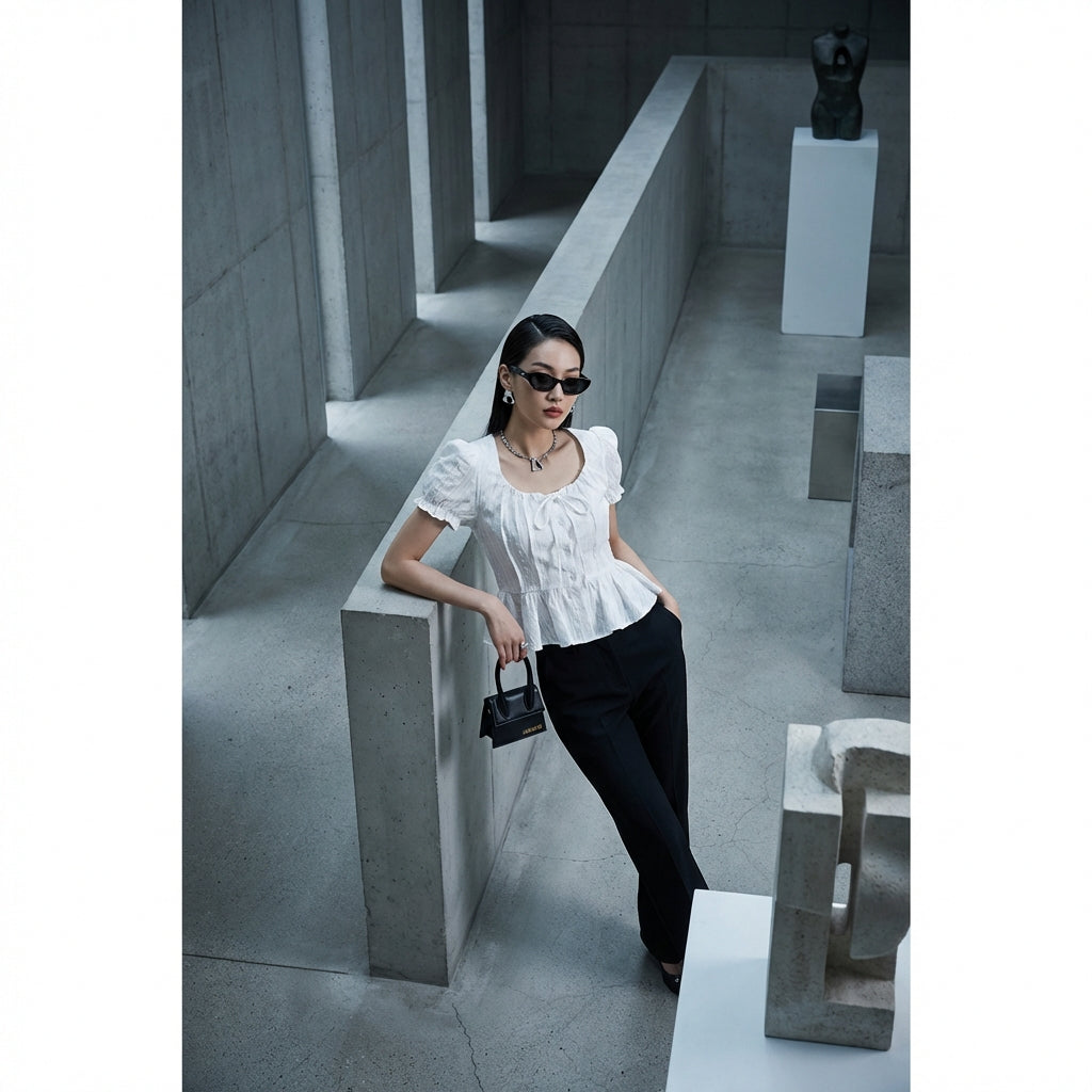 - Stil: Koreanische Mode, Elegant, Minimalistisch, Trendig. Dieses Top verkörpert die diskrete und moderne Eleganz der K-Fashion.