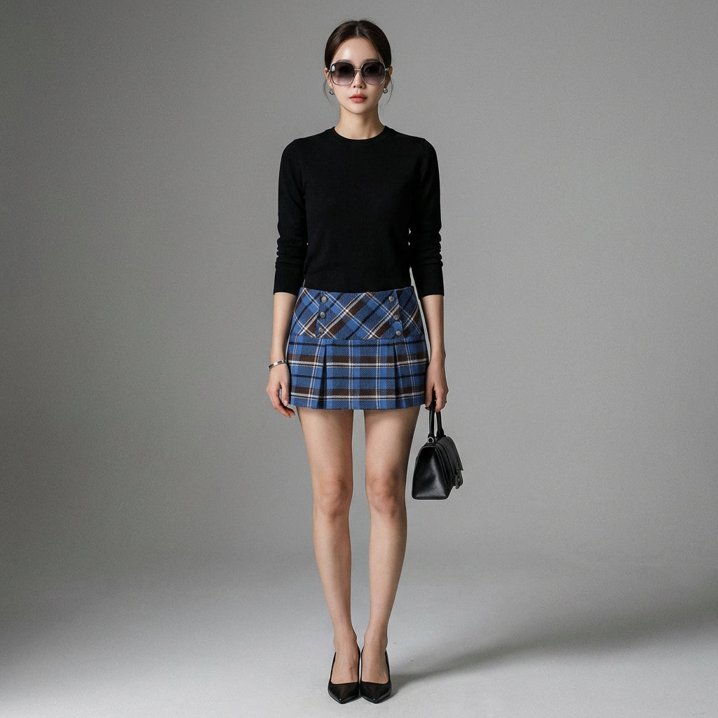 Betonen Sie Ihren Stil mit unserem karierten Minirock, einem Must-have der koreanischen Mode. Sein ultrakurzer Schnitt und sein zeitloses Muster machen ihn zum perfekten Stück für einen gewagten und stylischen Look! ✨