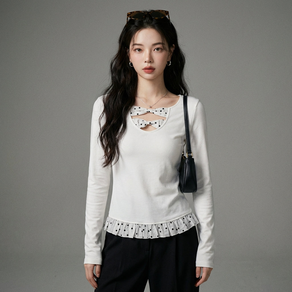 Kreieren Sie einen frischen und zarten Look mit unserem langärmeligen U-Ausschnitt T-Shirt, verziert mit zarten Punkten. Sein Slim-Fit-Schnitt und die Cropped-Länge machen es zur perfekten Wahl, um Ihre Figur elegant und modern in Szene zu setzen! 🌸