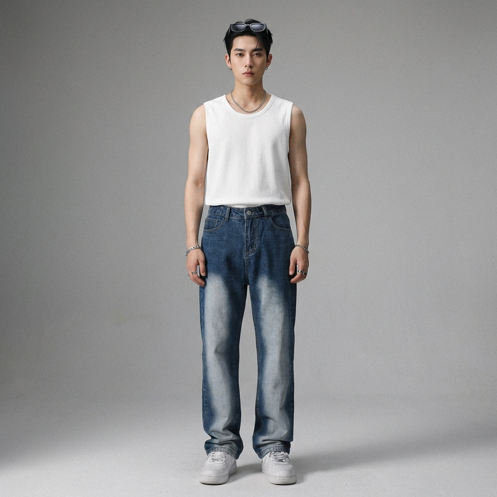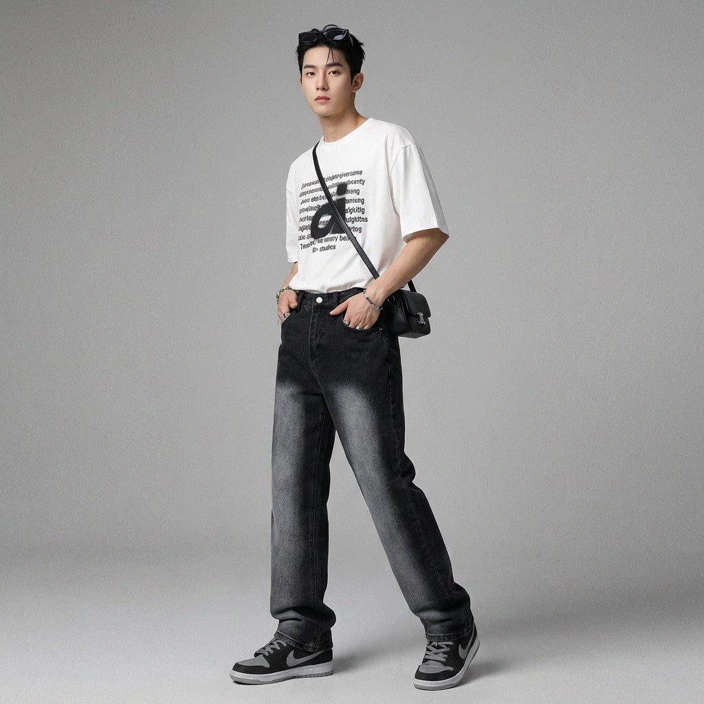 - Stil: Streetwear, Lässig, K-Fashion. Diese Jeans verkörpert den lässigen und modernen Streetwear-Geist, ideal für einen von der koreanischen Mode inspirierten Look.