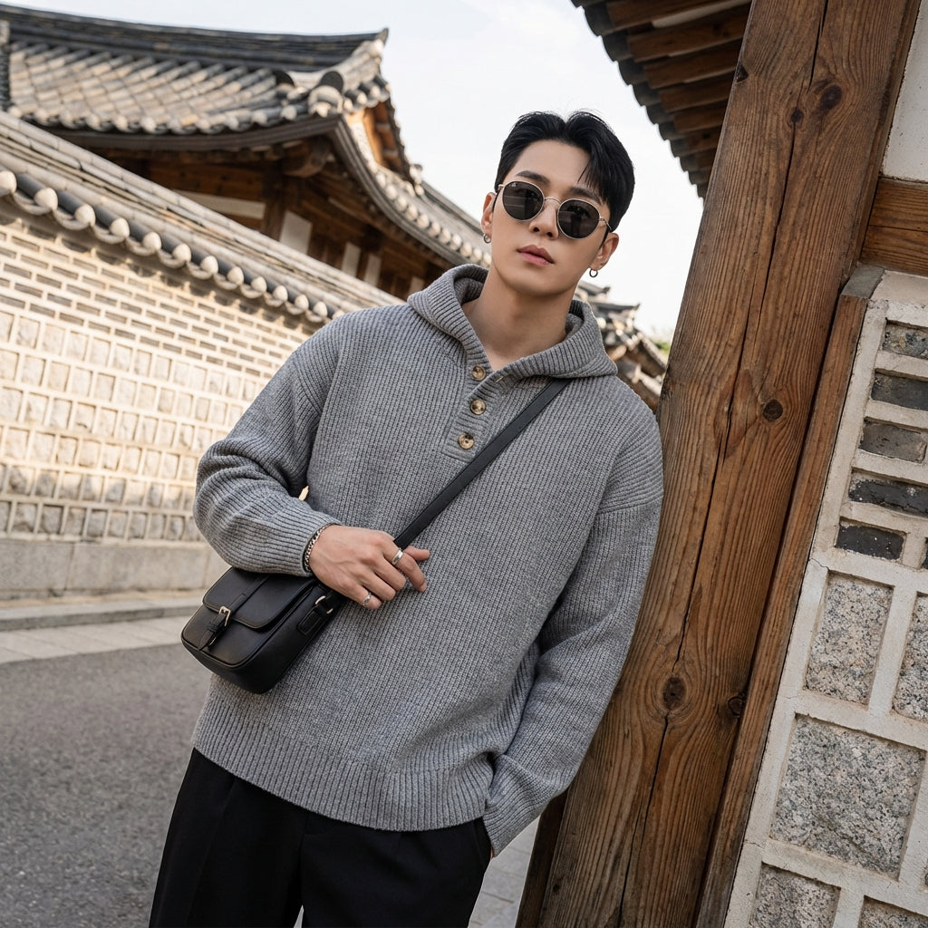 - Stil: Streetwear, Vintage, K-Fashion. Dieser Pullover verkörpert eine perfekte Fusion aus koreanischer Streetwear-Ästhetik und einem Vintage-Touch, ideal für einen selbstbewussten und lässigen Look.