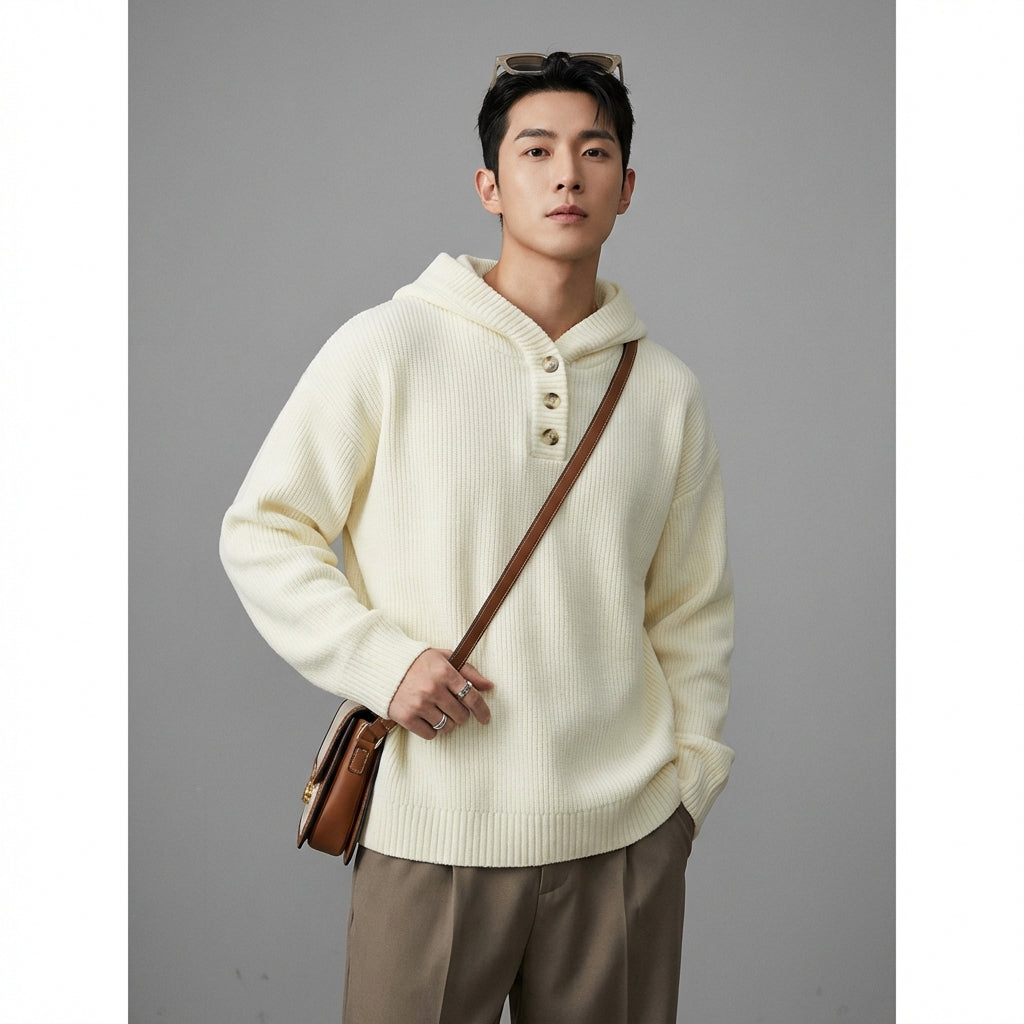 Kreieren Sie einen lässigen und trendigen Look mit unserem gestrickten Kapuzenpullover im Color-Block-Design und mit halber Knopfleiste. Seine lockere Passform und die knitterarme Behandlung machen ihn zu einem Must-have für einen bequemen und modernen Stil! ✨