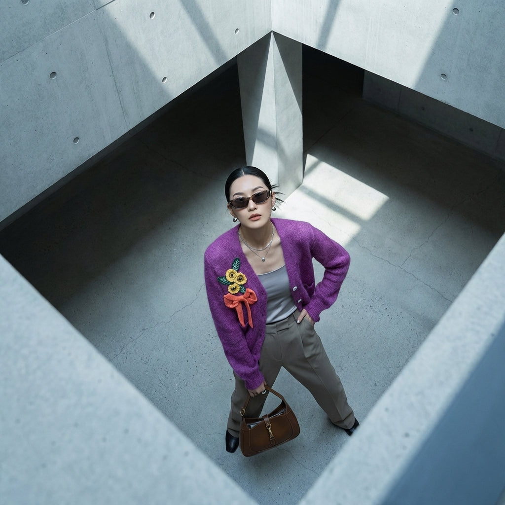 Dieser violette Blumen-Cardigan ist eine unverzichtbare Ergänzung Ihrer Garderobe, die Komfort und Stil mit einem Hauch koreanischer Eleganz verbindet.