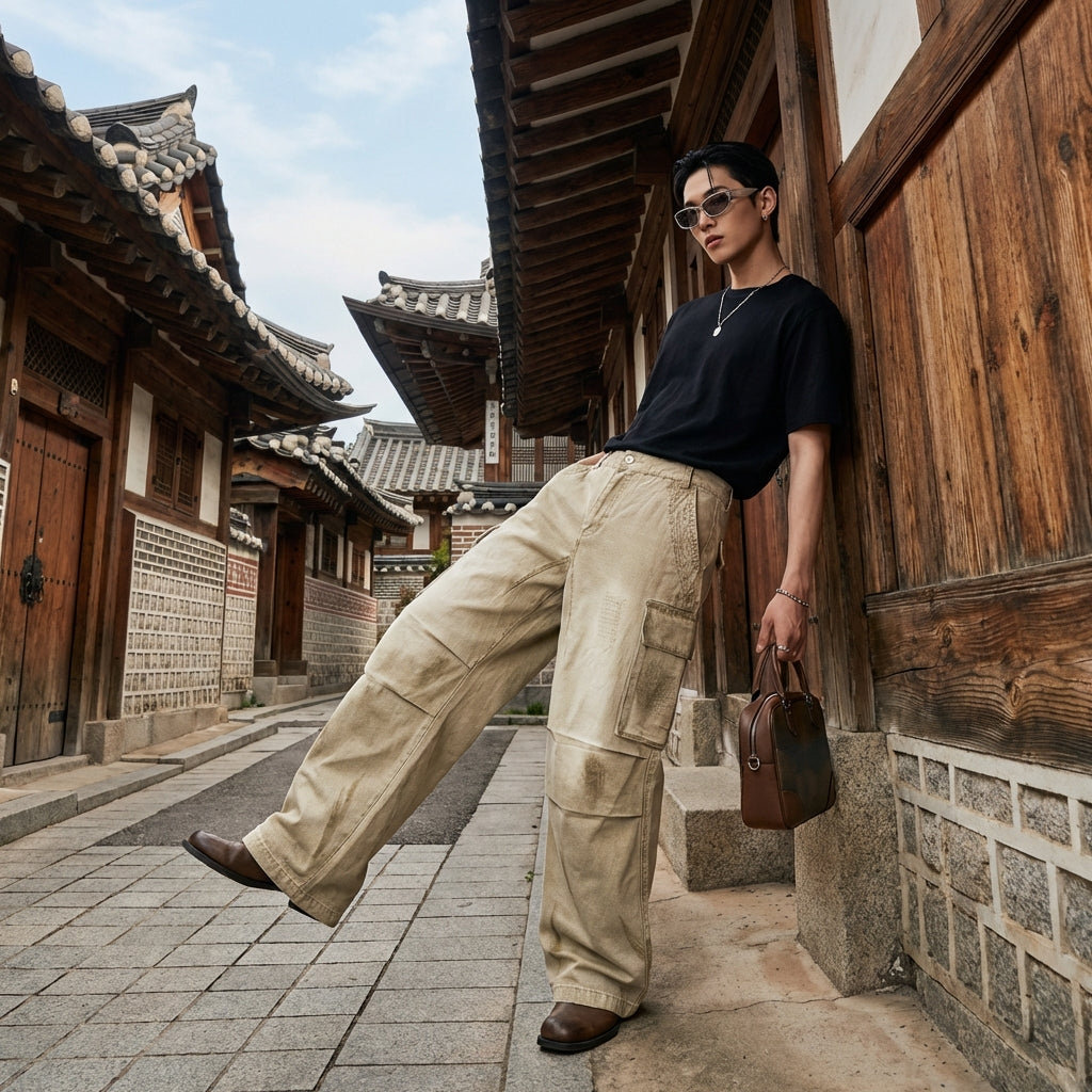 Betonen Sie Ihren Stil mit unserer weiten Cargohose, einem Schlüsselstück für einen lässigen und gewagten Look. Sie wurde für Komfort und Haltbarkeit entworfen und besticht durch ein verwaschenes und zerknittertes Design mit mehreren Taschen, perfekt für einen Hauch von Originalität im Alltag! ✨
