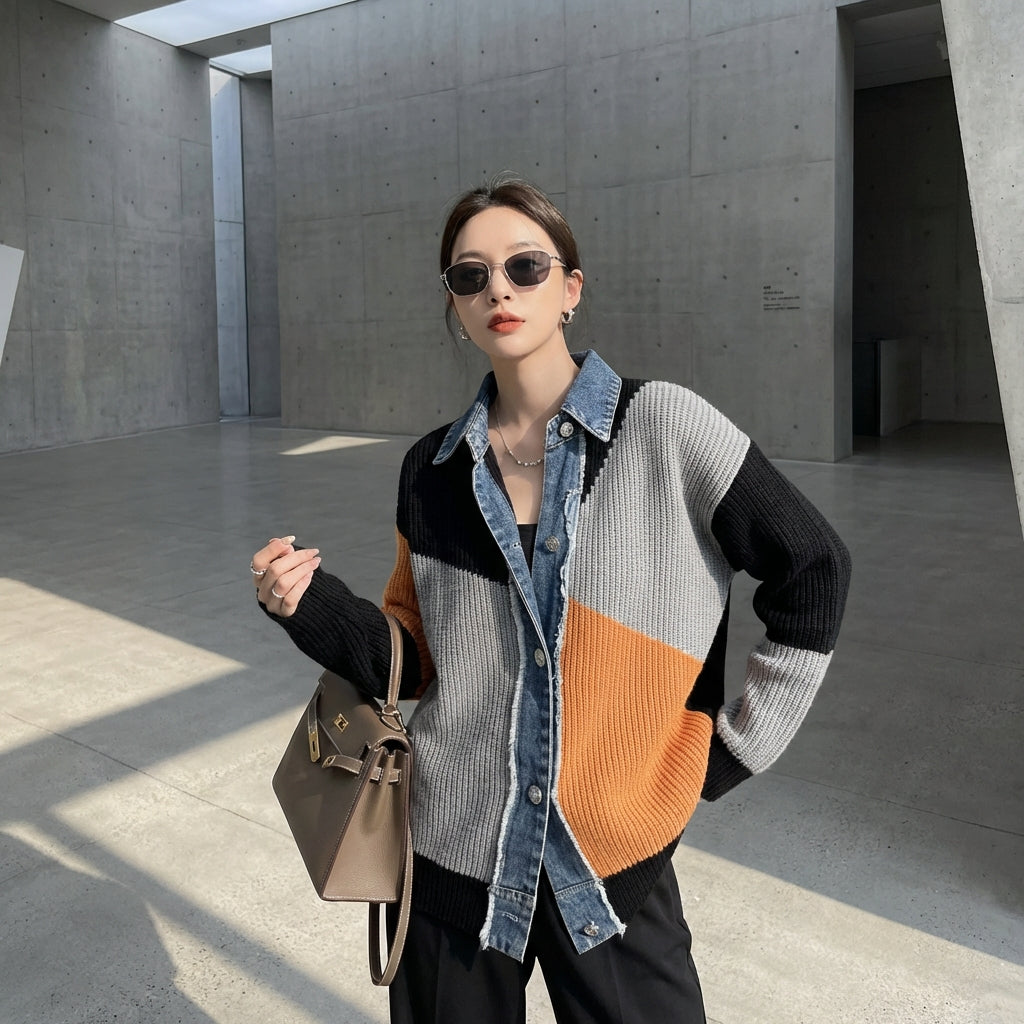 - Stil: K-Fashion, Streetwear, Trend. Dieser Cardigan verkörpert den Geist der zeitgenössischen koreanischen Mode, perfekt für einen urbanen und stilvollen Look.