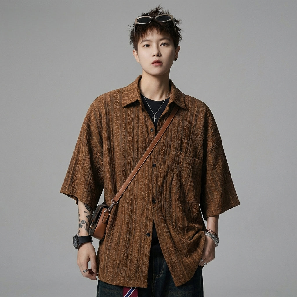 Chemise streetwear à rayures, manches courtes, coupe ample - K-fashion - Taille M