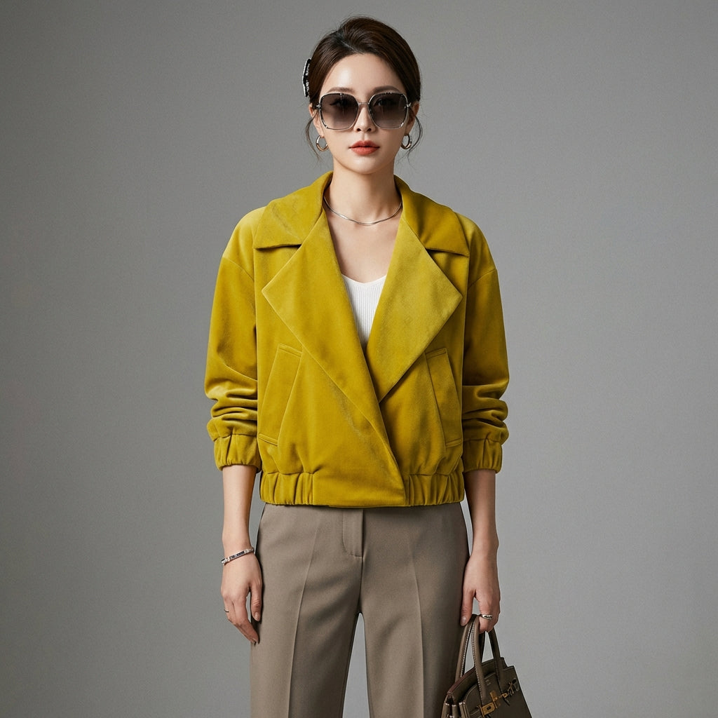 Diese kurze Faltenjacke ist die perfekte Wahl für alle, die ein schickes, bequemes und leicht zu kombinierendes Kleidungsstück suchen, das die besten Trends der koreanischen Mode widerspiegelt.