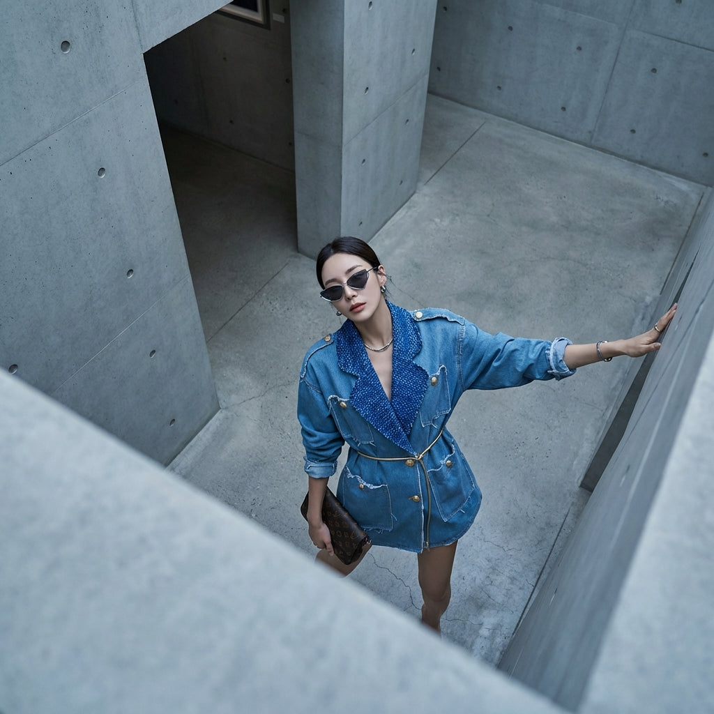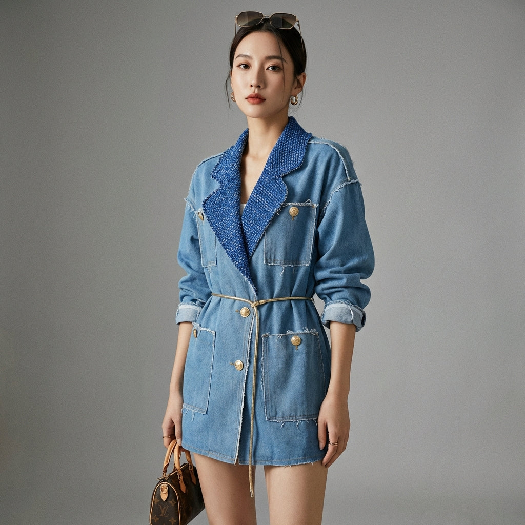 Dieser zweifarbige Denim-Blazer ist das perfekte Stück, um Ihre Garderobe mit einem Hauch von zeitgenössischem koreanischem Stil aufzuwerten, der Komfort und lässige Eleganz vereint.