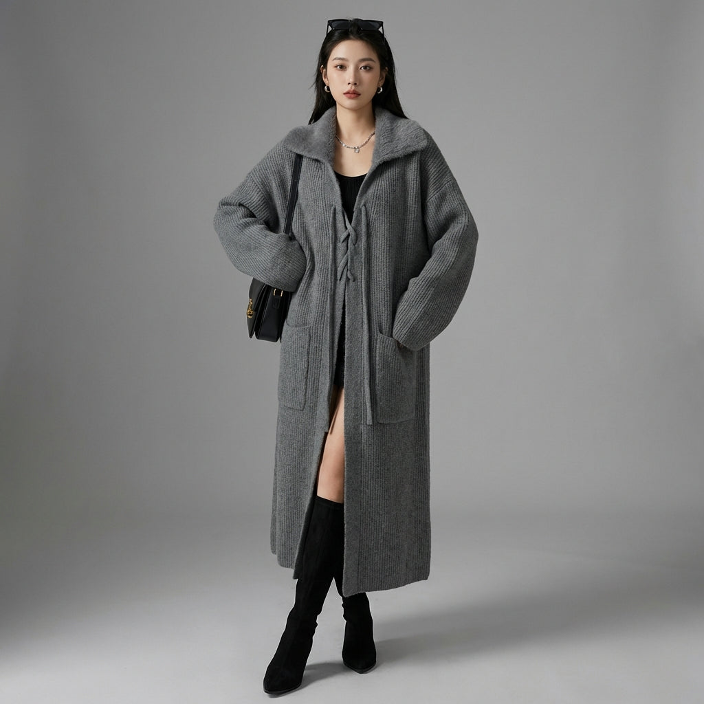 Umfassen Sie Komfort und Eleganz mit unserem dicken, gestrickten Long-Cardigan. Dieser vielseitige Pullover ist ideal zum Überziehen und verfügt über einen raffinierten Schalkragen und eine entspannte Passform, perfekt für einen schicken Vintage-Look oder einen lässigen Alltagsauftritt! ✨