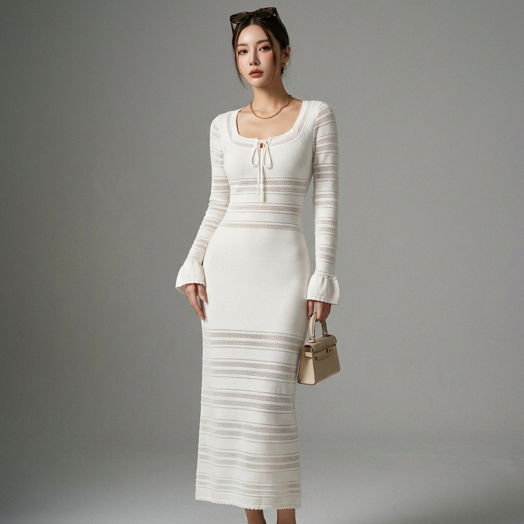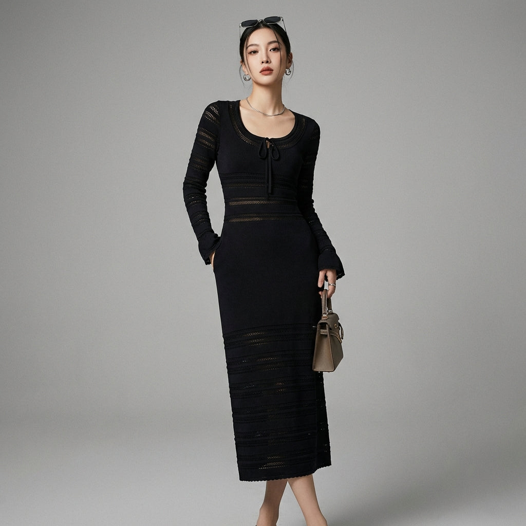 - Typ: Langes, figurbetontes Kleid. Ein körpernaher Schnitt, der die Silhouette betont und einen raffinierten und femininen Look bietet.