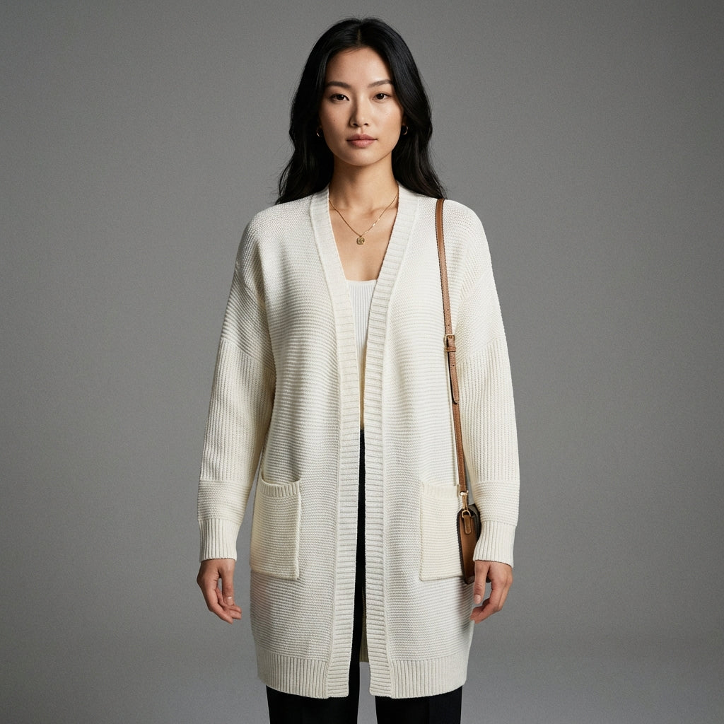 Dieser Cardigan ist ein Schlüsselstück für jede Garderobe, die Komfort, Stil und Vielseitigkeit mit koreanischer Modeinspiration verbinden möchte.