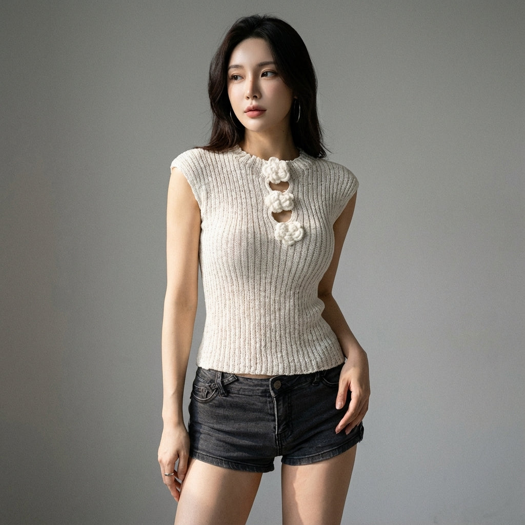 Kreieren Sie einen trendigen und femininen Look mit unserer Strickweste, verziert mit zarten 3D-Blumen. Dieses ärmellose Oberteil verleiht all Ihren Outfits einen Hauch von Originalität und Sanftheit, perfekt zum Überziehen oder allein tragen! 🌸