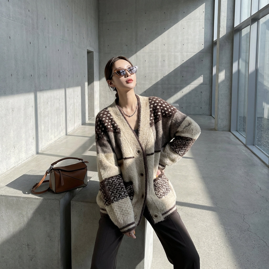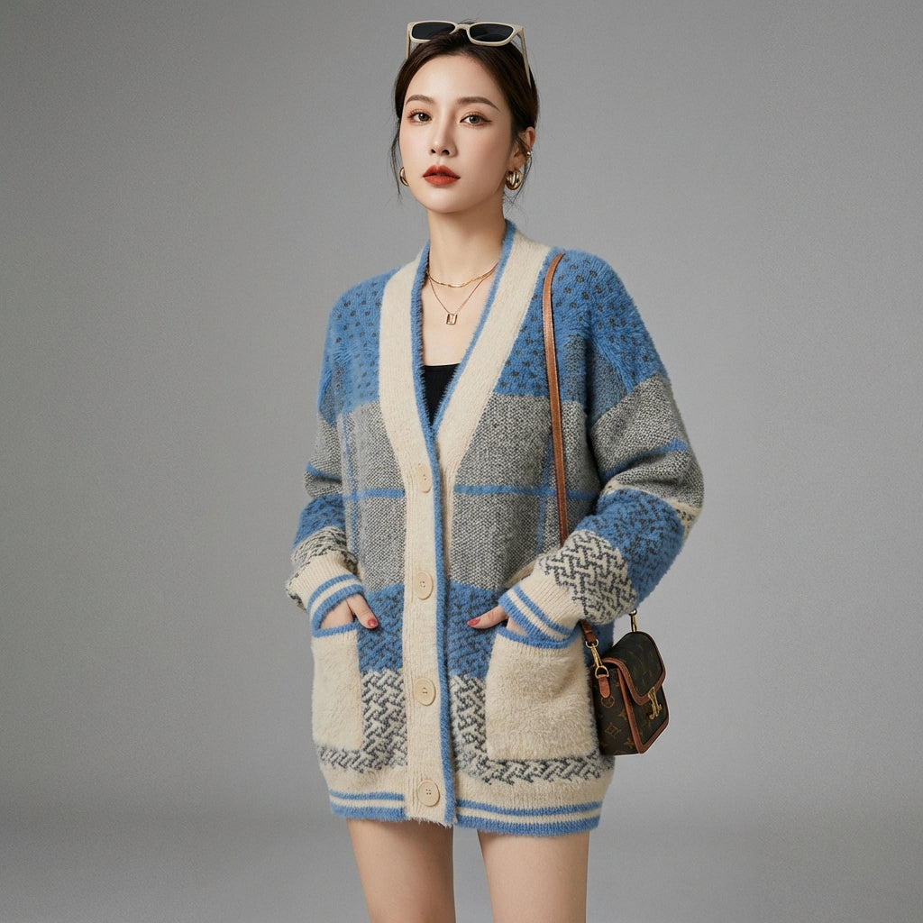 - Stil: K-Fashion, Sanft, Lässig, Trendig. Dieser Cardigan verkörpert die "Lazy Style"-Ästhetik der koreanischen Mode und vereint Komfort mit modernem Aussehen.