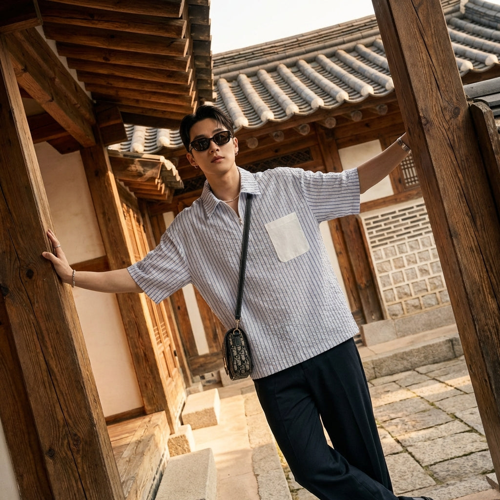 • Stil: Streetwear, K-Fashion, Lässig. Dieses Hemd verkörpert den Geist der koreanischen Urban Fashion mit seinen klaren Linien und seinem modernen Design.