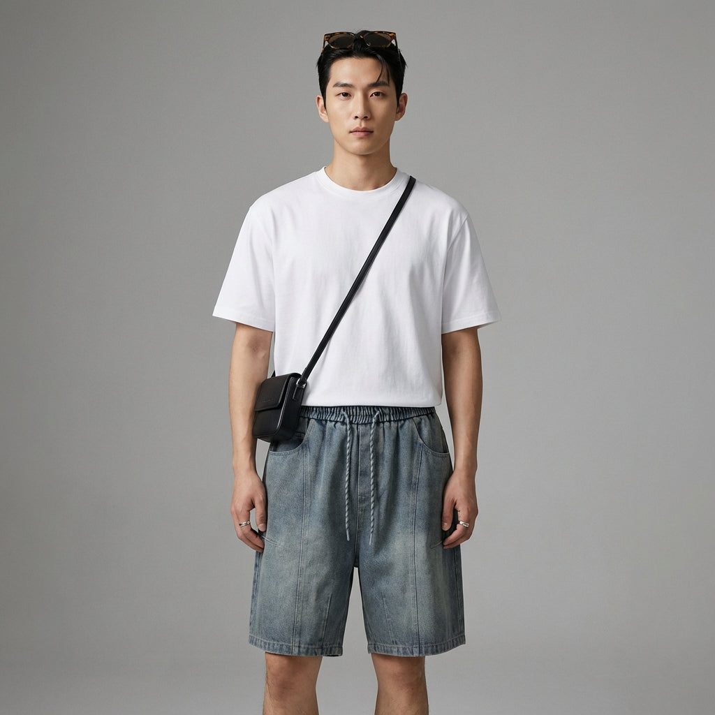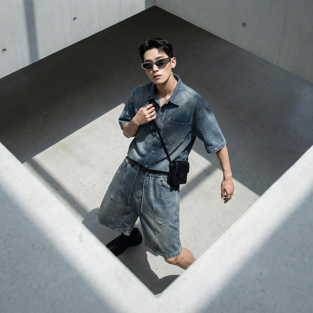 Diese verwaschenen Denim-Shorts sind das ideale Kleidungsstück, um Ihre Streetwear-Garderobe zu ergänzen und bieten eine perfekte Balance zwischen selbstbewusstem Stil und lässigem Komfort.