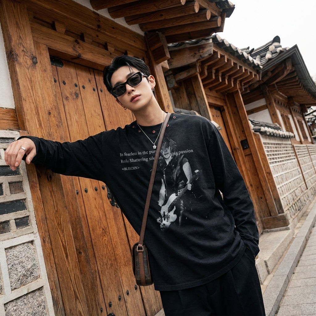 • Stil: Streetwear, Urban, Trendy. Dieses T-Shirt verkörpert den Geist der koreanischen Streetwear-Mode mit einem lässigen und stilvollen Touch.