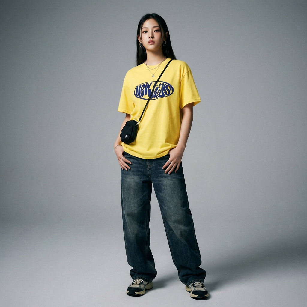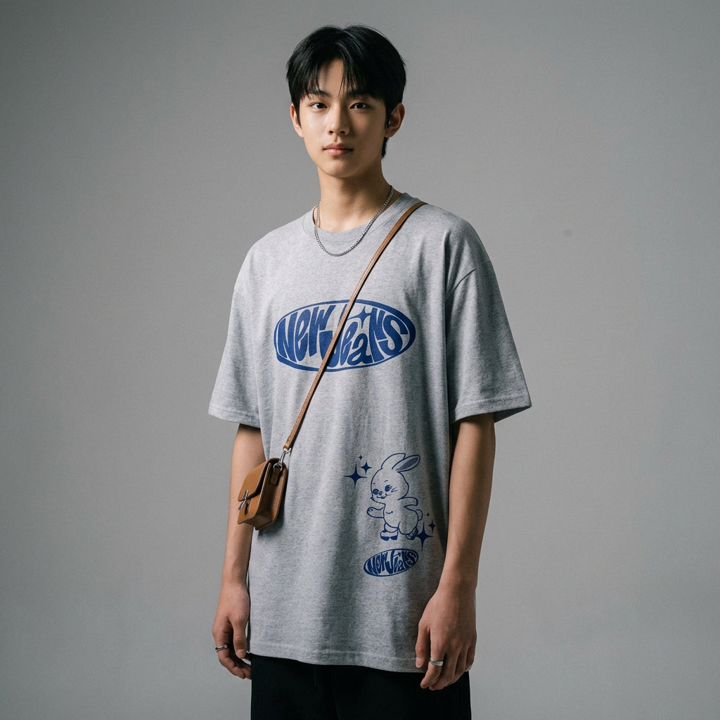Verkörpern Sie die Essenz der koreanischen Mode mit unserem NewJeans Bunny Oversize T-Shirt, einem Must-have für Liebhaber des K-Pop- und Streetwear-Stils. Dieses T-Shirt vereint Komfort und Trend mit seinem NewJeans-Hasenaufdruck, perfekt für Männer und Frauen, die einen lässigen und niedlichen Look suchen. Hergestellt aus einer Mischung aus Baumwolle, Polyester, Mikrofaser und Spandex, bietet es außergewöhnliche Weichheit und Flexibilität, geeignet für alle Jahreszeiten.
