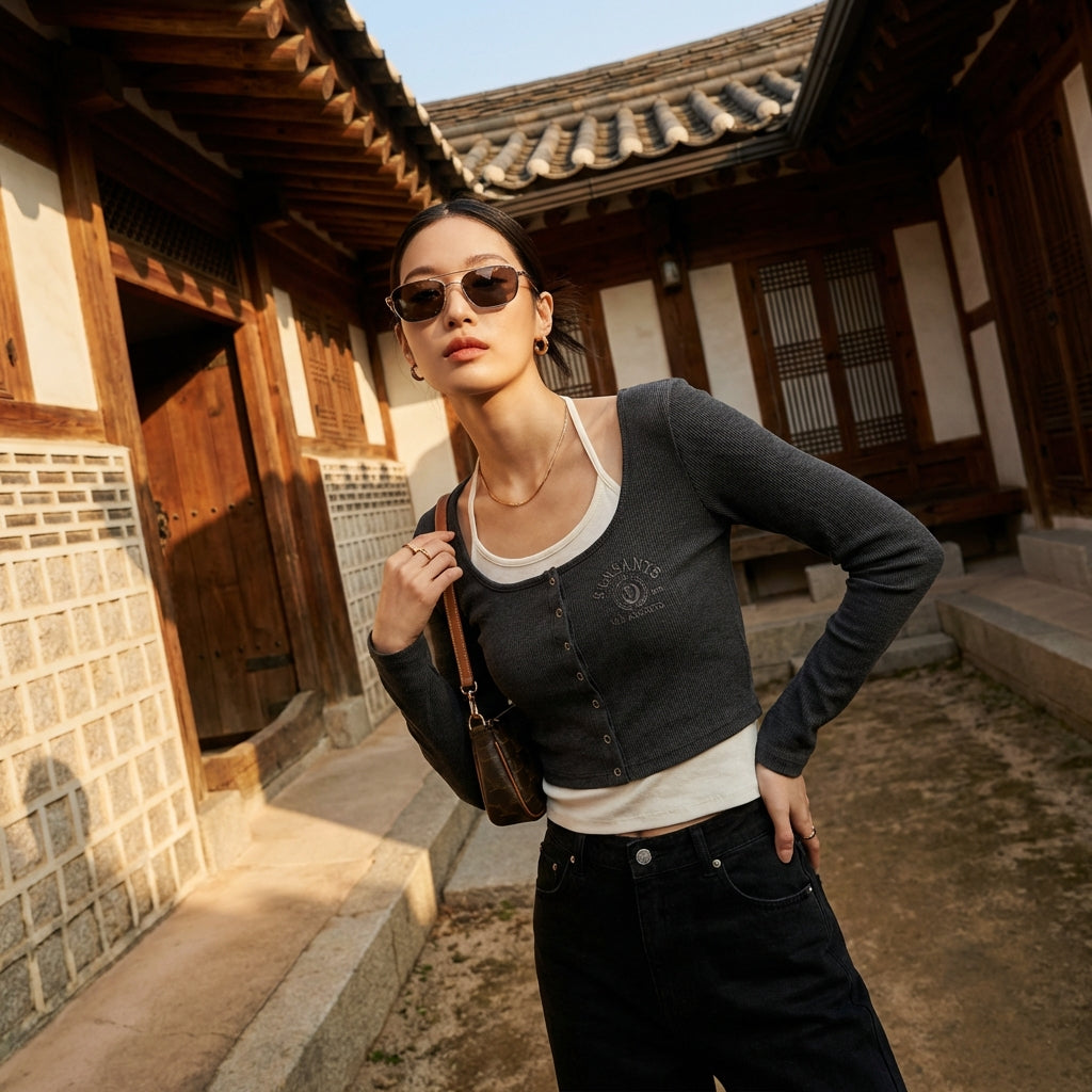Entscheiden Sie sich für dieses Crop-Top für einen zeitgemäßen Look, der Komfort und Stil vereint, ein Schlüsselstück für jede von koreanischer Mode inspirierte Garderobe.